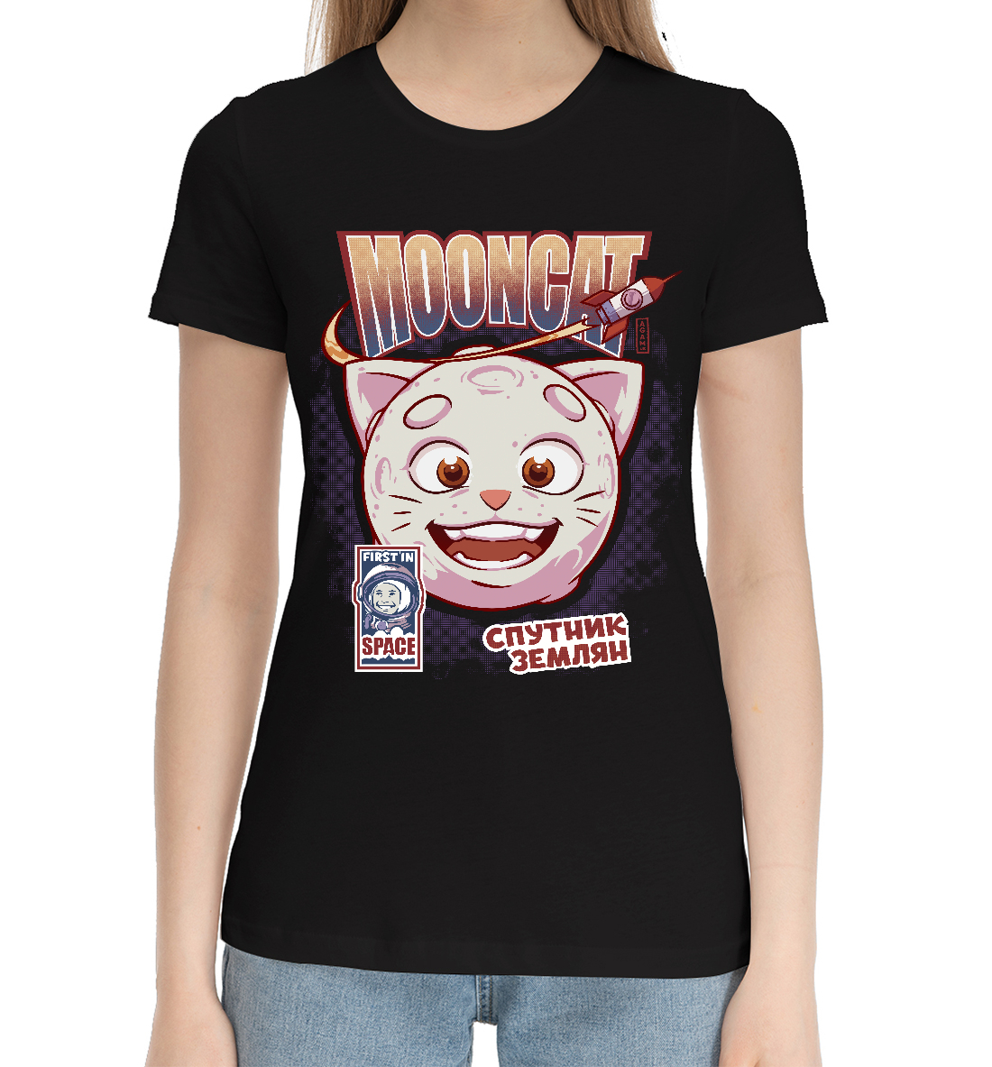 Женская хлопковая футболка Лунный кот