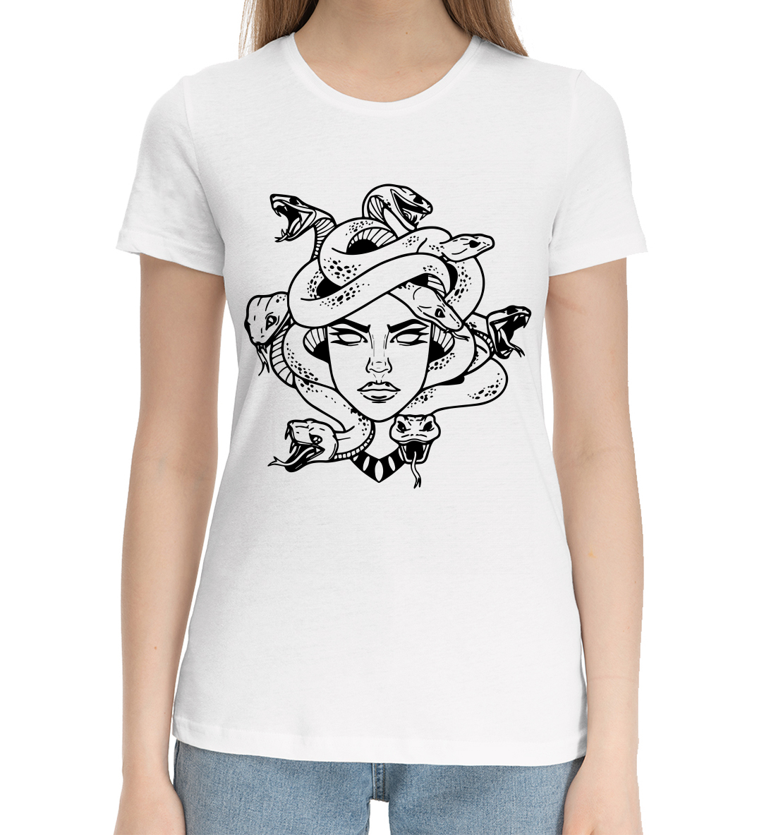 Женская хлопковая футболка Medusa tattoo print