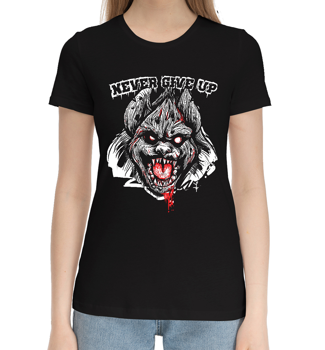 Женская хлопковая футболка Никогда не сдавайся (гиена)