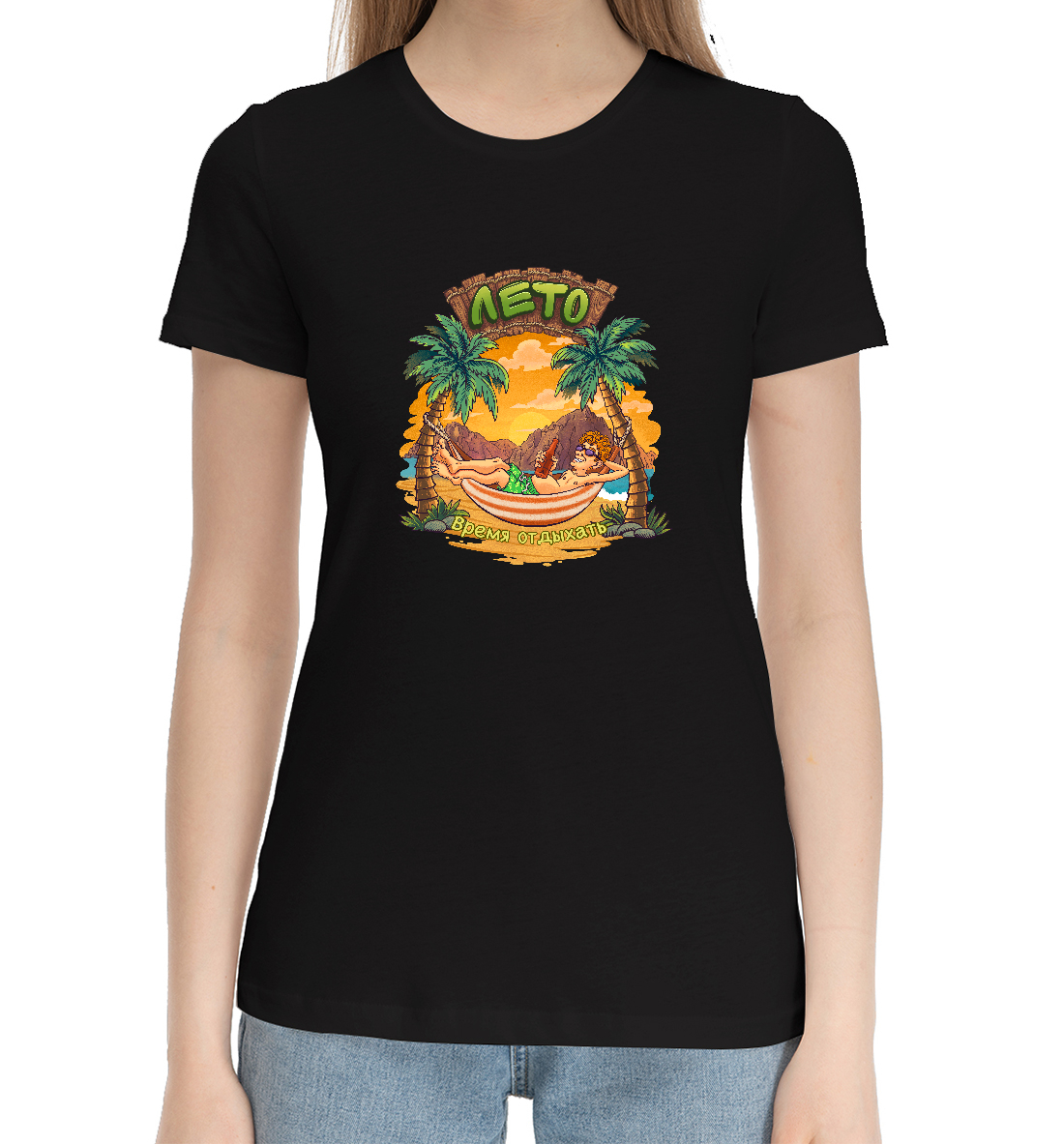 Женская хлопковая футболка Отдыхающий на пляже среди пальм
