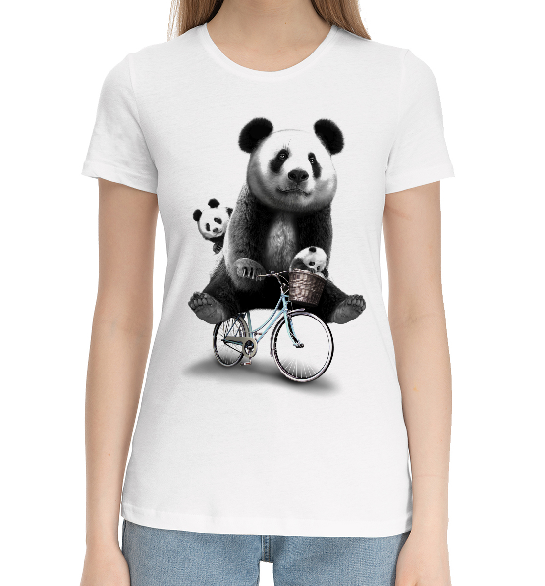 Женская хлопковая футболка Панда на велосипеде