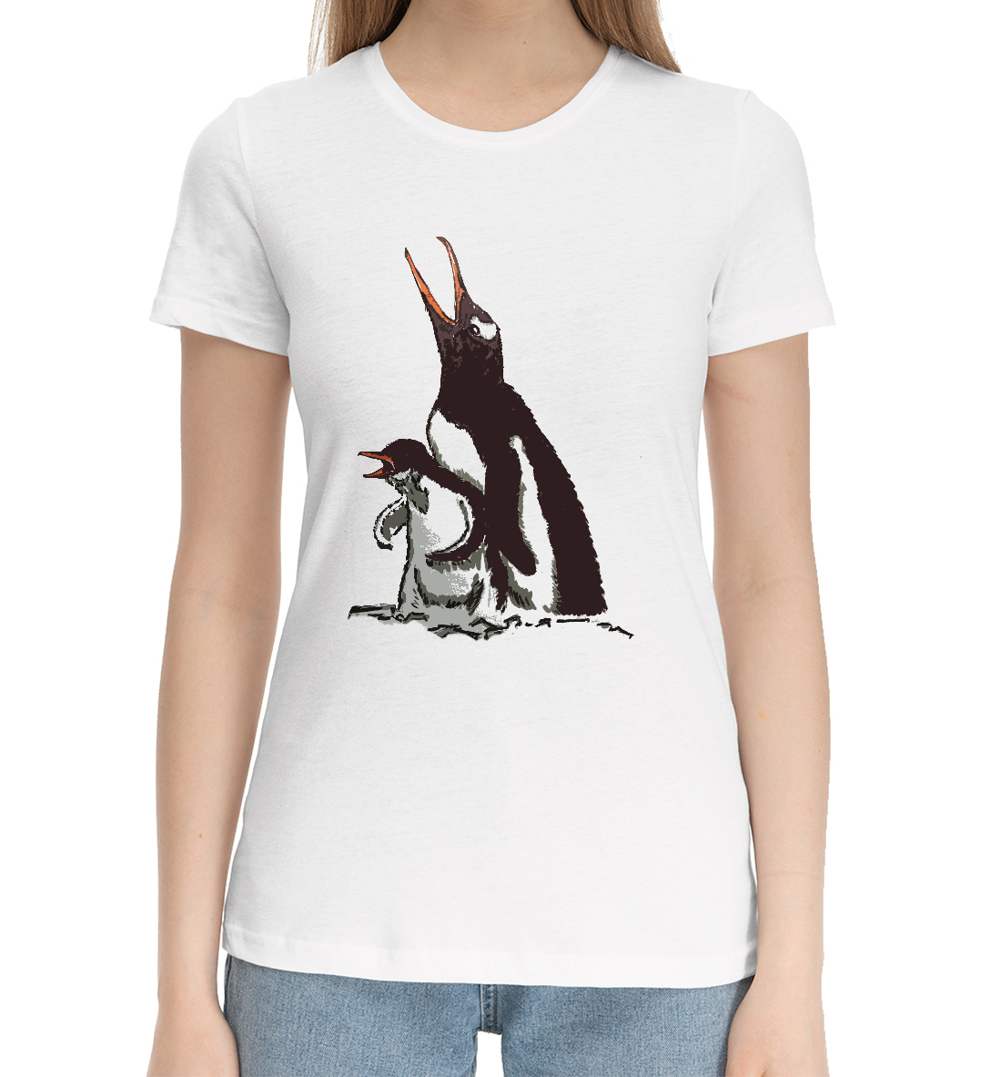 Женская хлопковая футболка Пингвин - птенец с мамой