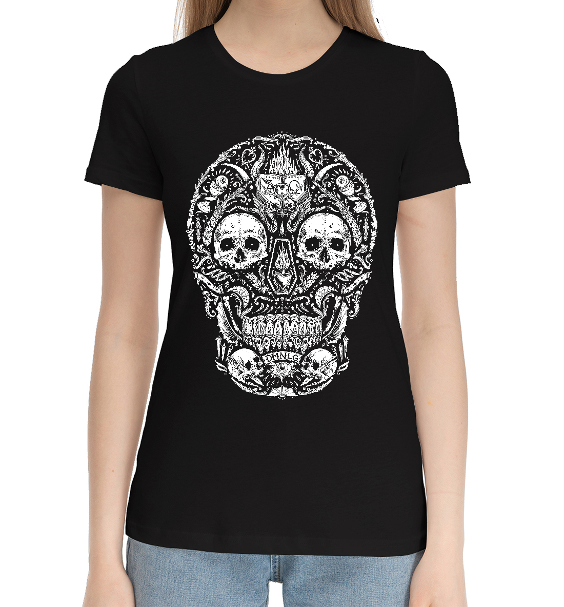 Женская хлопковая футболка Портрет черепа из черепов