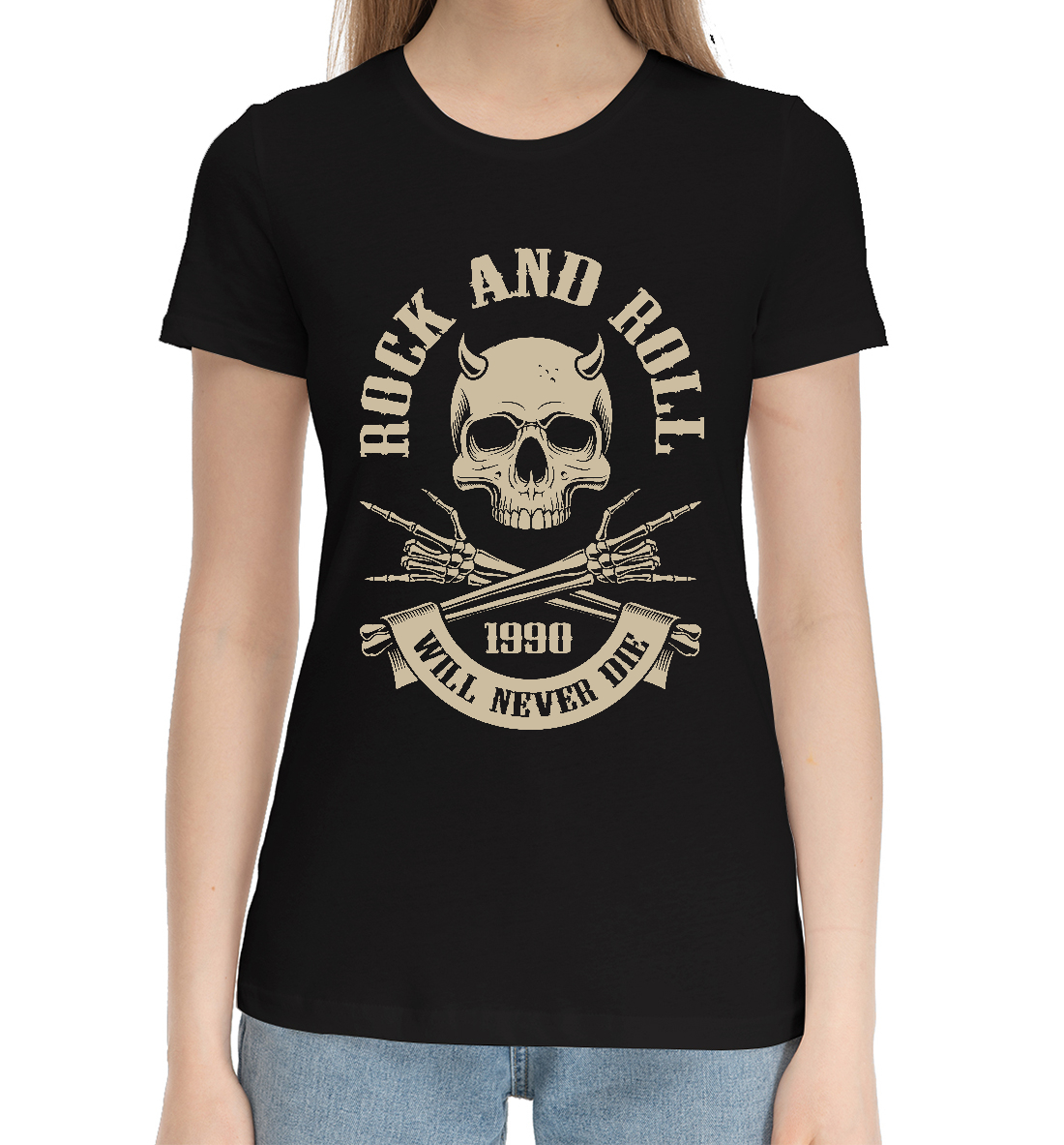Женская хлопковая футболка Rock N Roll - skull