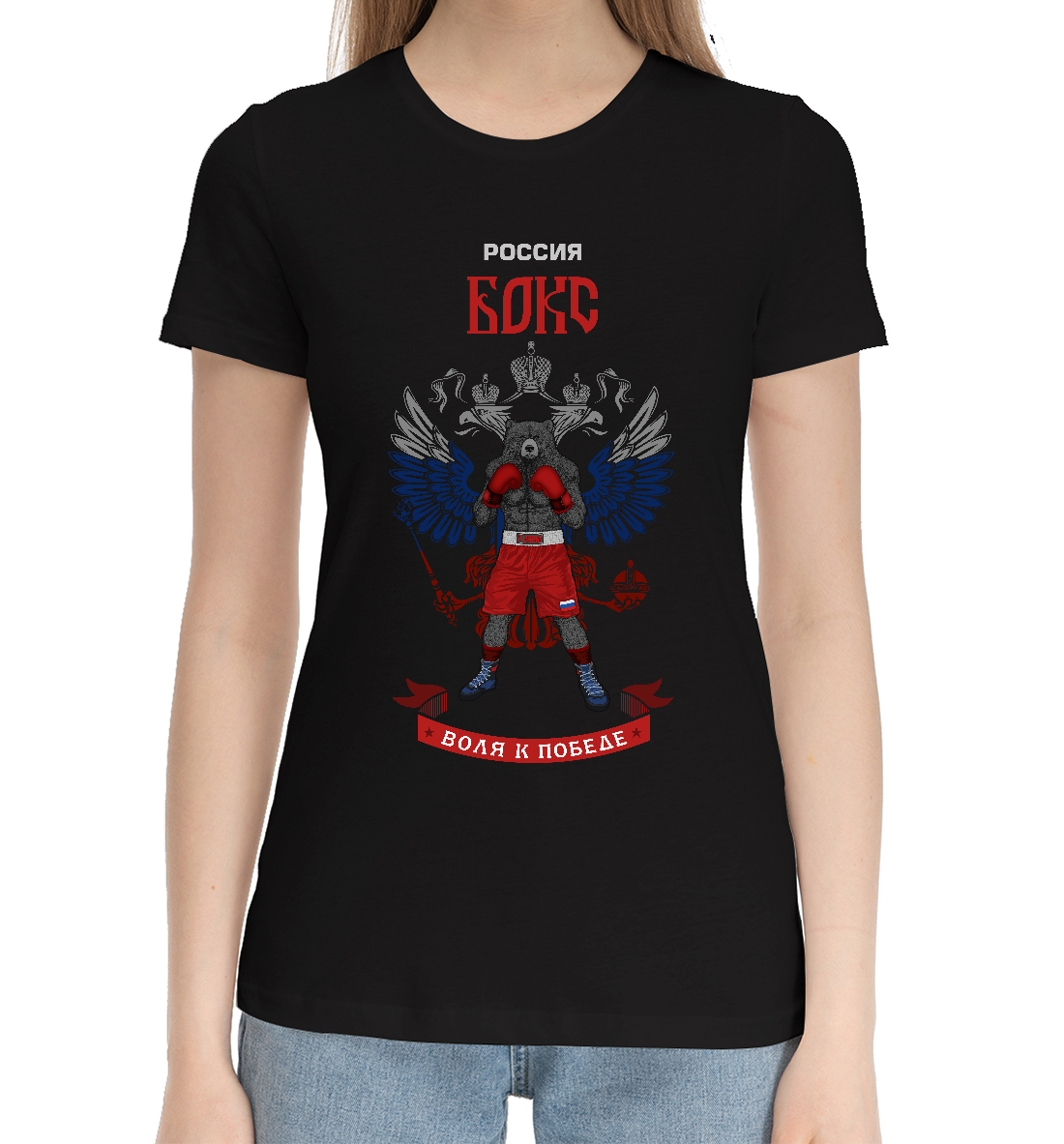 Женская хлопковая футболка Россия бокс - воля к победе !