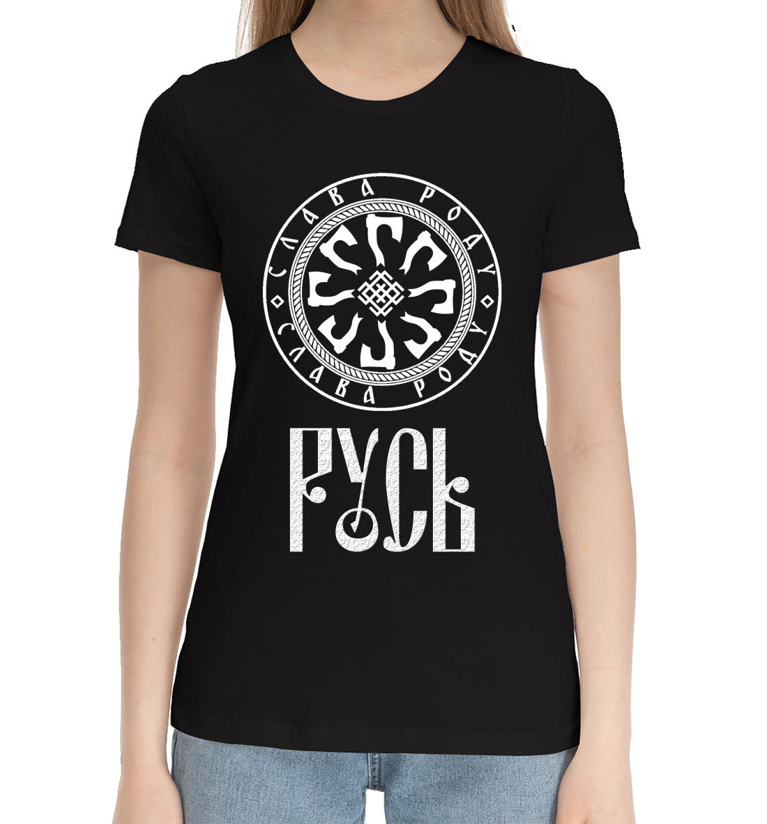 Женская хлопковая футболка Русь (Валькирия и топоры)