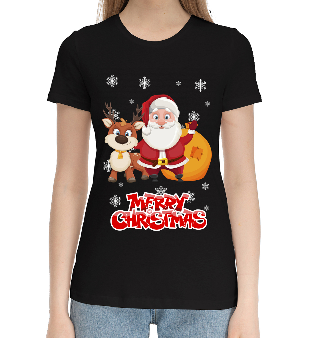 Женская хлопковая футболка Санта с оленем