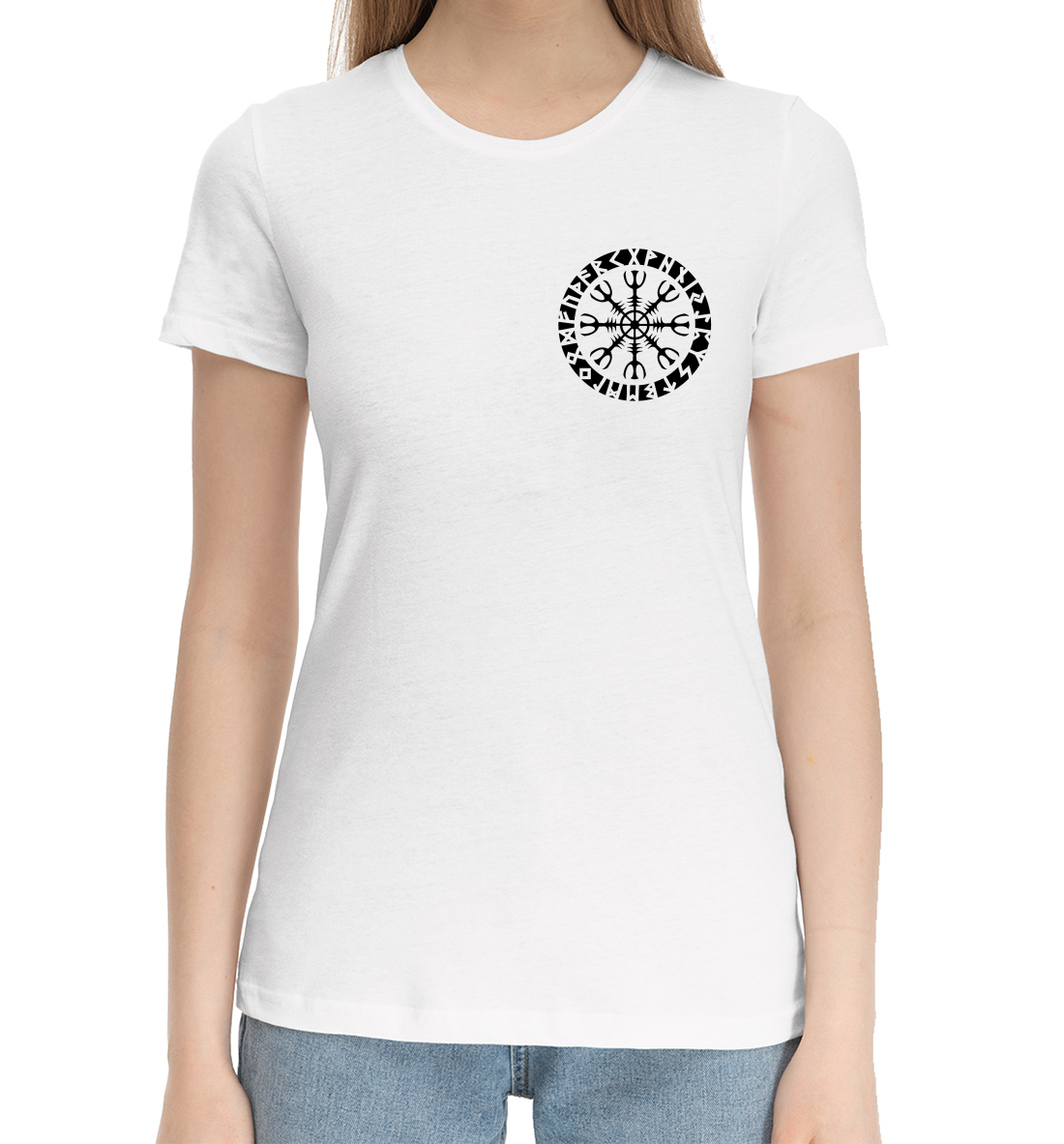 Женская хлопковая футболка Шлем ужасов в круге рун