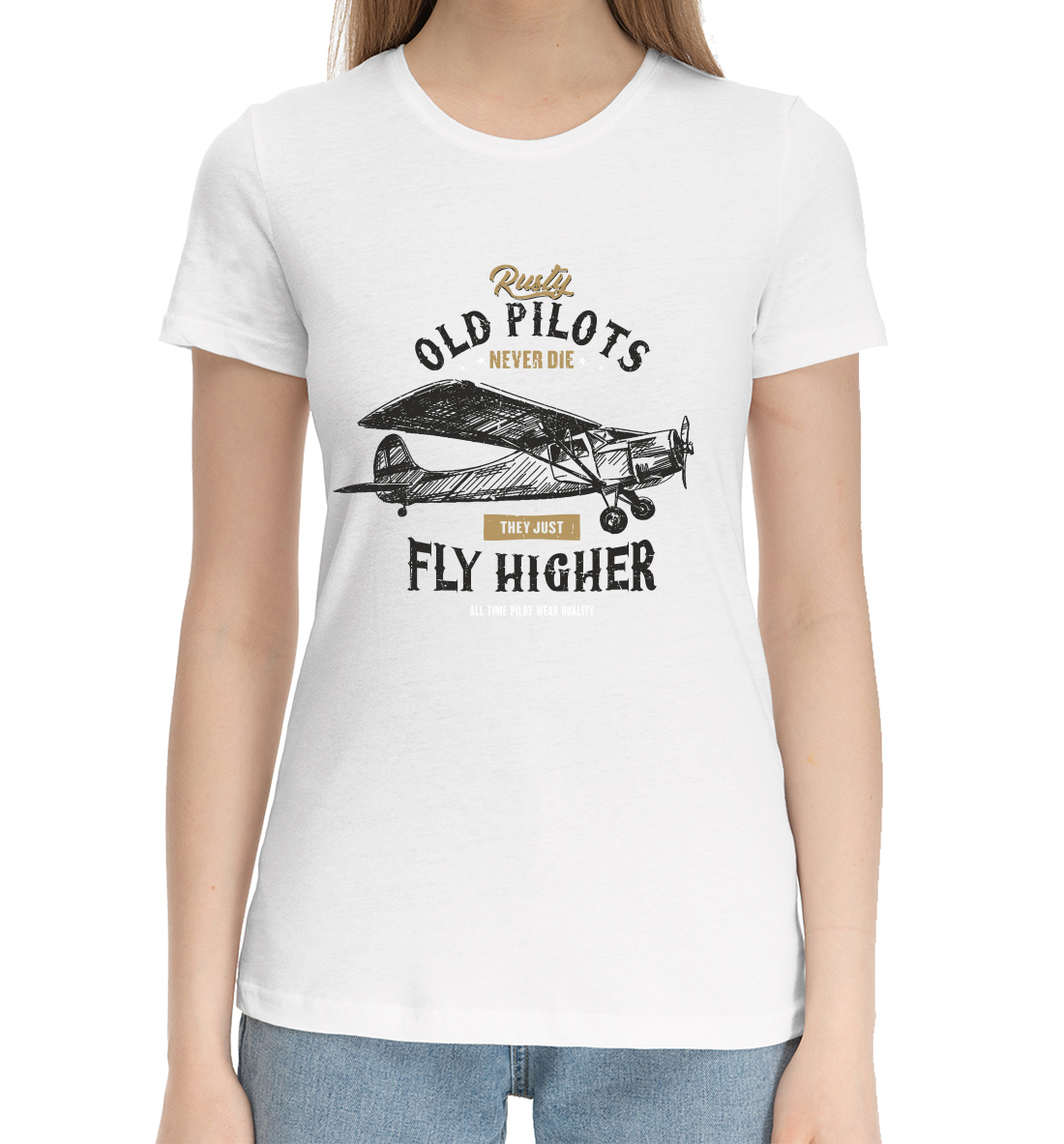 Женская хлопковая футболка Старые пилоты не умирают - они просто летают выше