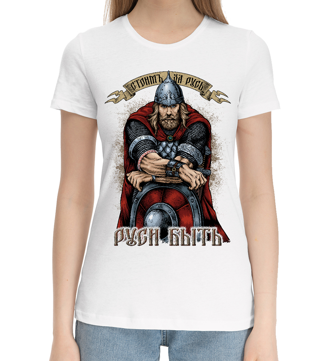 Женская хлопковая футболка Стоим за Русь (белый фон)