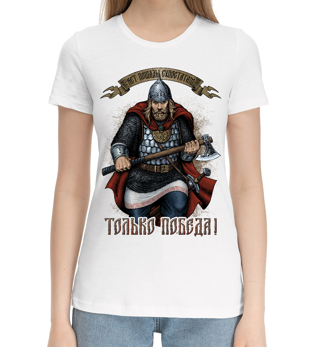 Женская хлопковая футболка Только победа (белый фон)