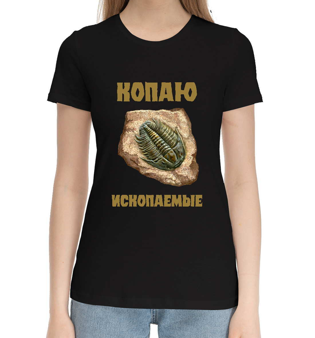 Женская хлопковая футболка Трилобит на камне копаю ископаемые