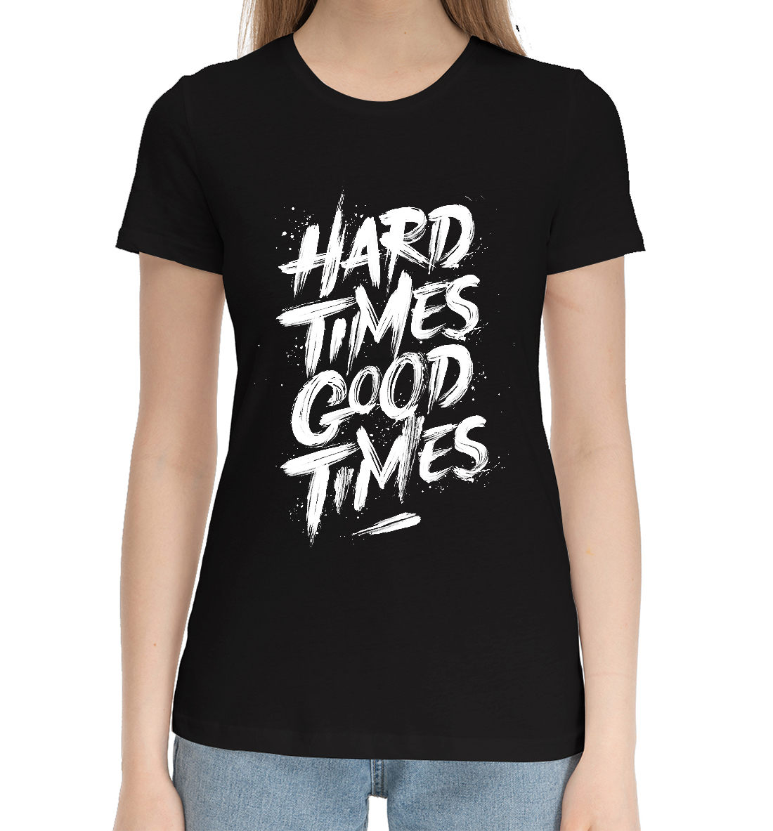 Женская хлопковая футболка ТЯЖЕЛЫЕ ВРЕМЕНА ВО БЛАГО