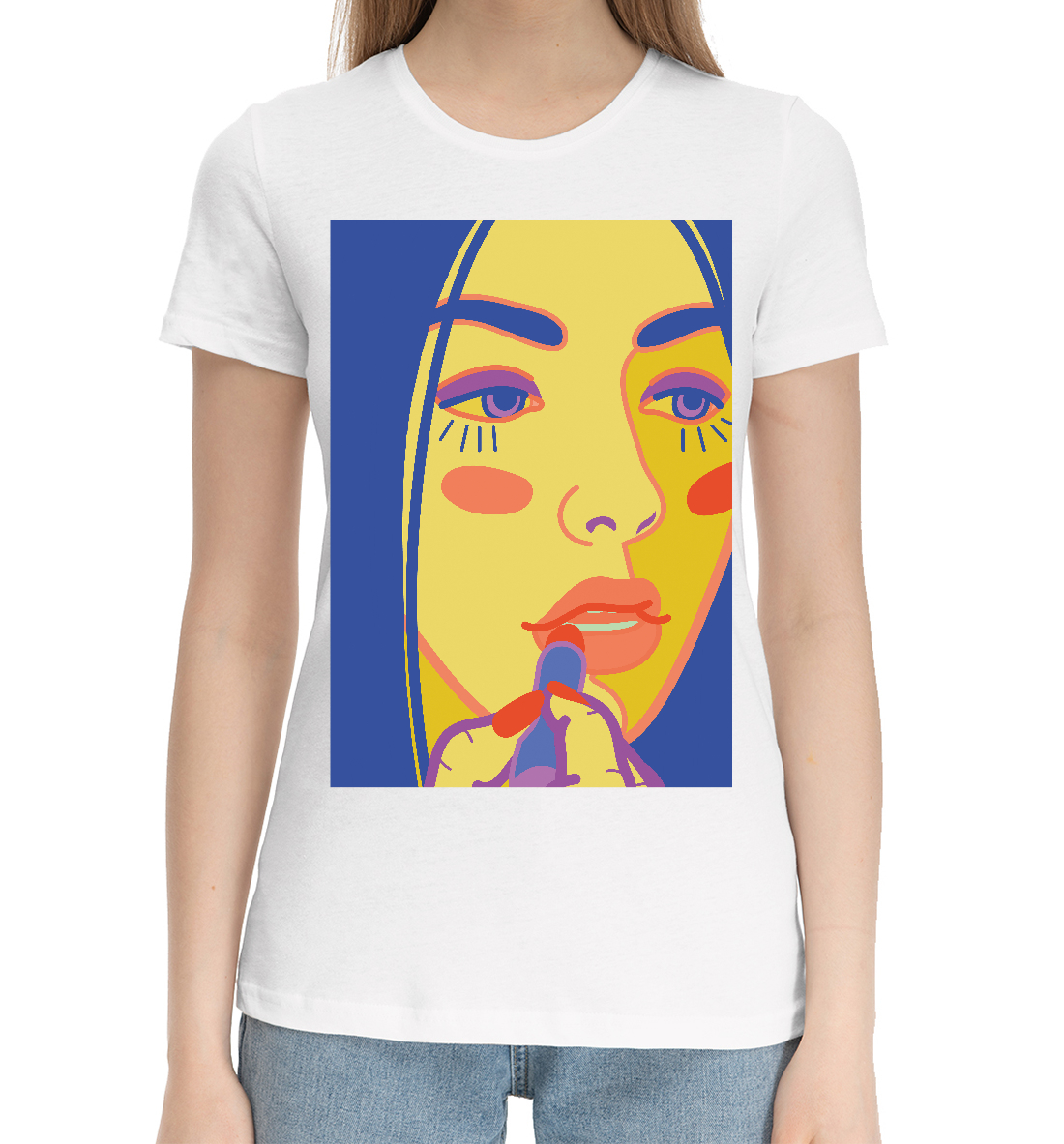 Женская хлопковая футболка Яркий женский портрет в стиле поп-арт