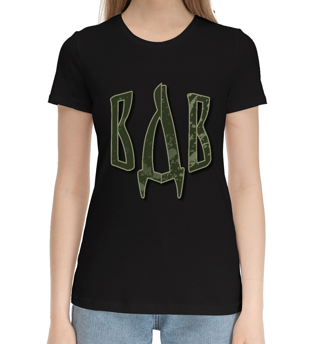 Женская хлопковая футболка Зеленый камуфляж ВДВ