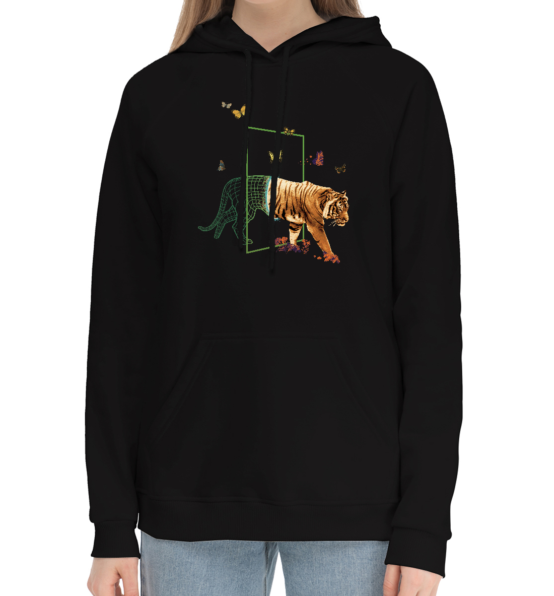 Женский хлопковый худи с принтом «Акварельный Тигр - Коллаж»