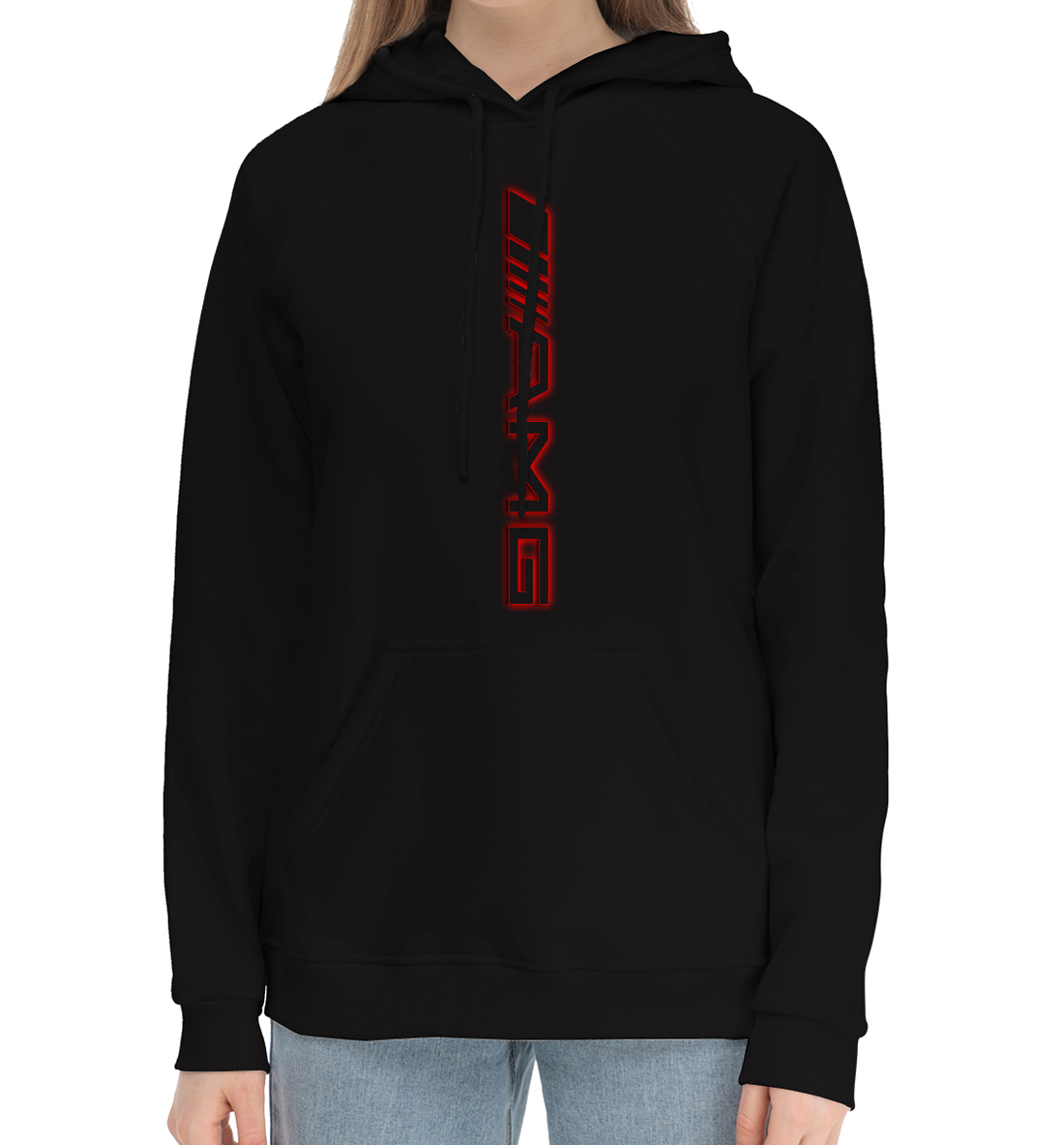 Женский хлопковый худи с принтом «AMG Red-Black»