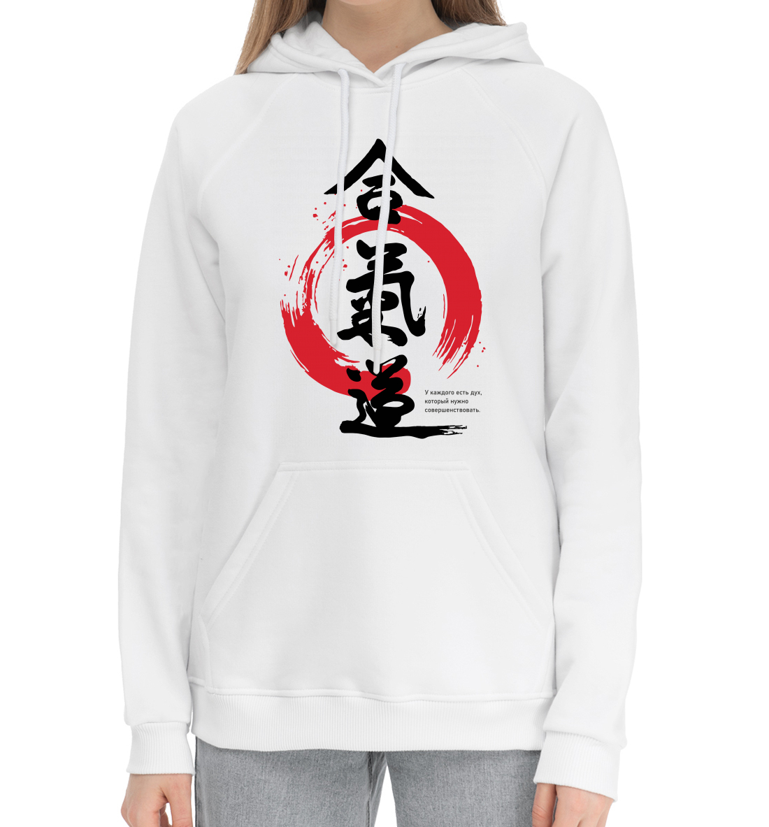 Женский хлопковый худи с принтом «Айкидо - у каждого есть дух»