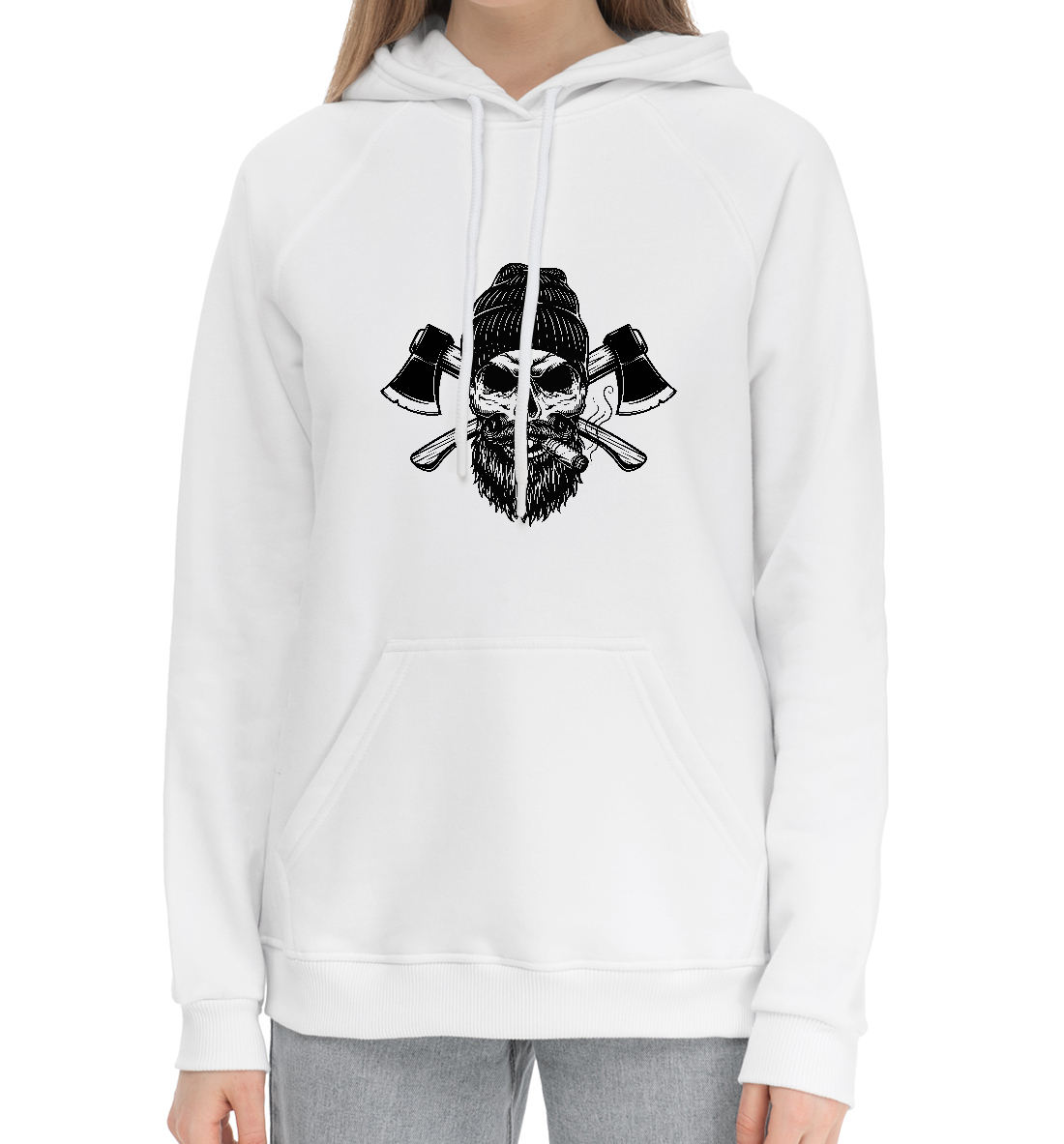 Женский хлопковый худи с принтом «Череп брутального дровосека»