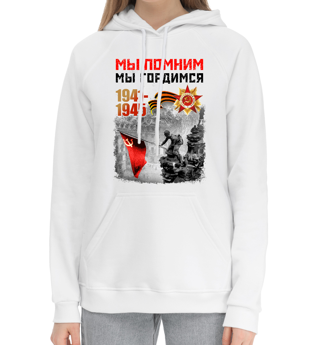 Женский хлопковый худи с принтом «День Победы»