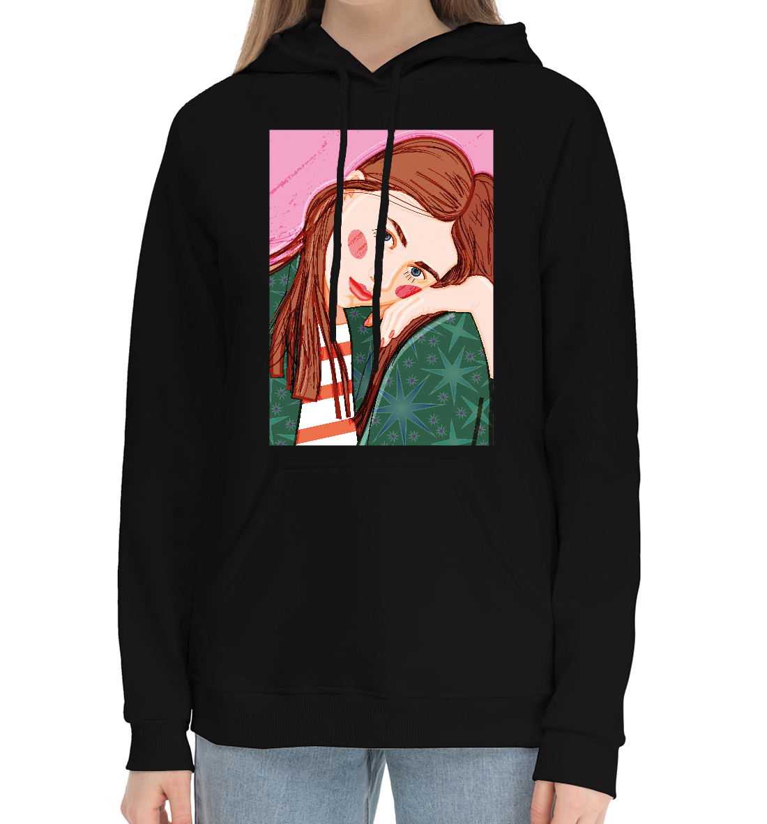 Женский хлопковый худи с принтом «Девушка в зелёном платье»