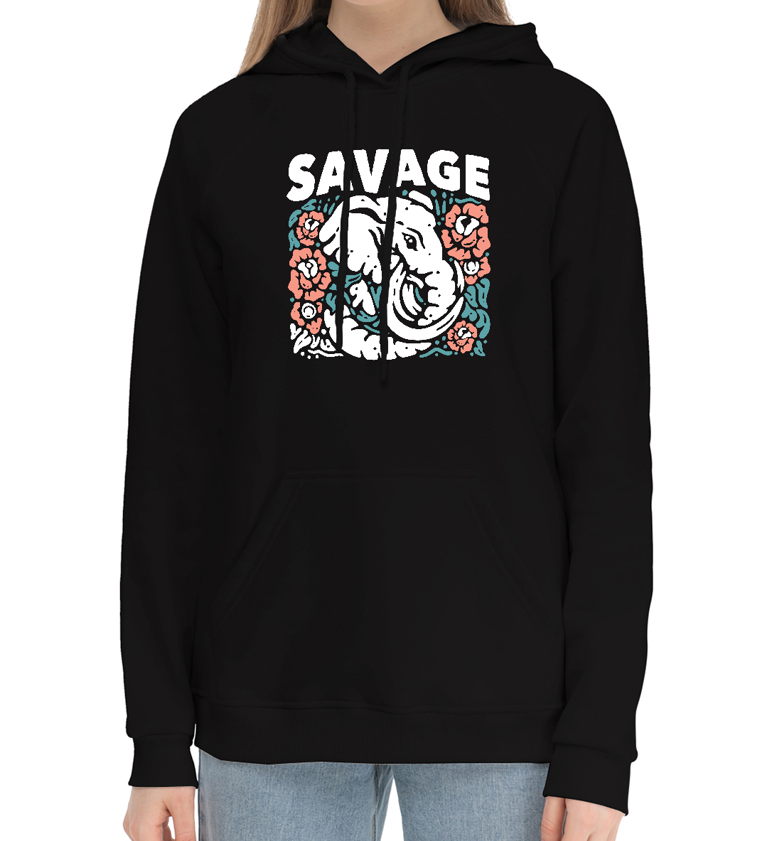 Женский хлопковый худи с принтом «Дикий Слон»