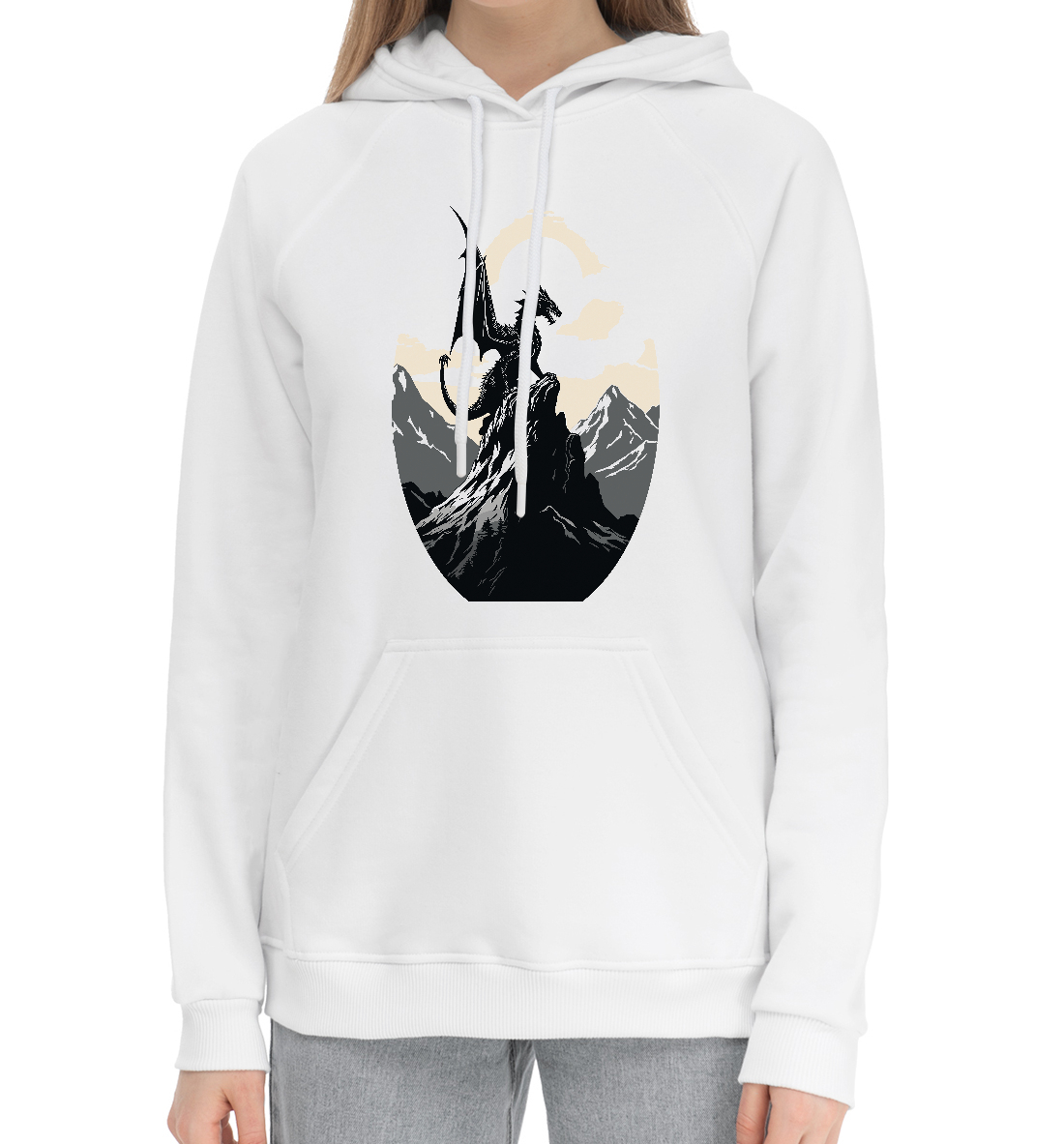 Женский хлопковый худи с принтом «Дракон на горе»