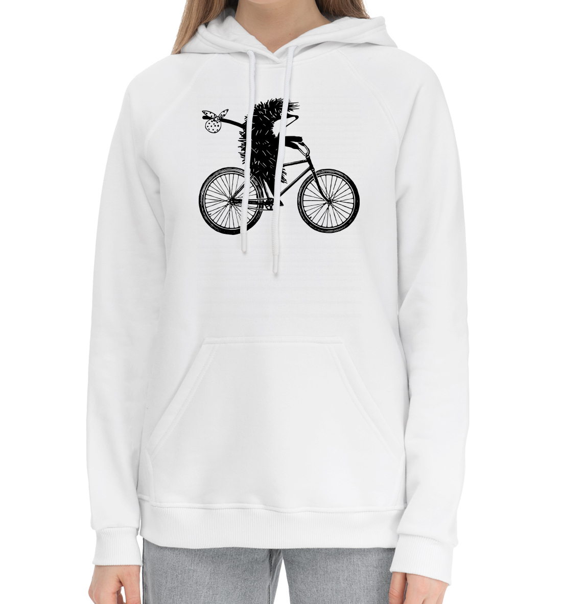 Женский хлопковый худи с принтом «Ежик на велосипеде»