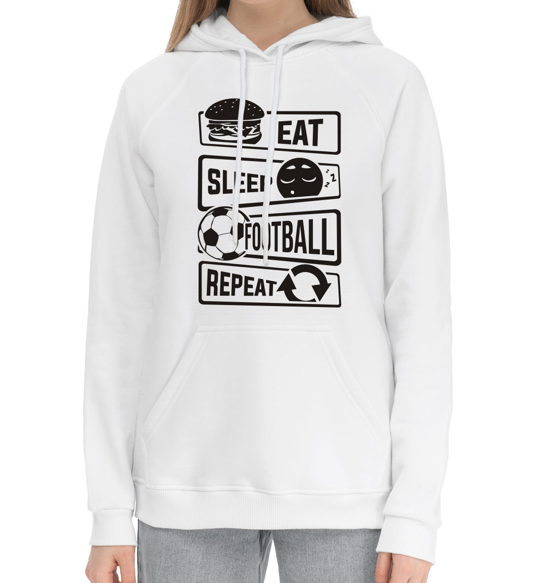 Женский хлопковый худи с принтом «Есть, спать, футбол»