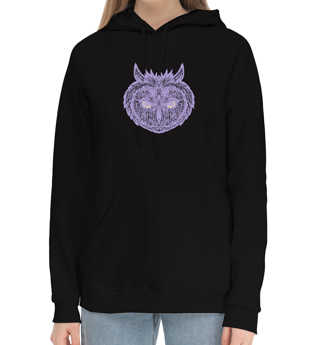 Женский хлопковый худи с принтом «Фиолетовая сова»