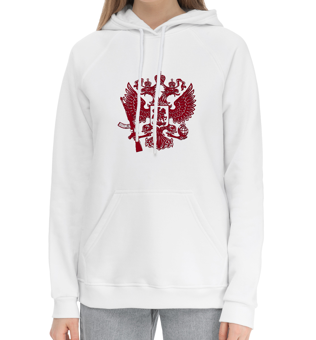 Женский хлопковый худи с принтом «Герб РФ с автоматом»