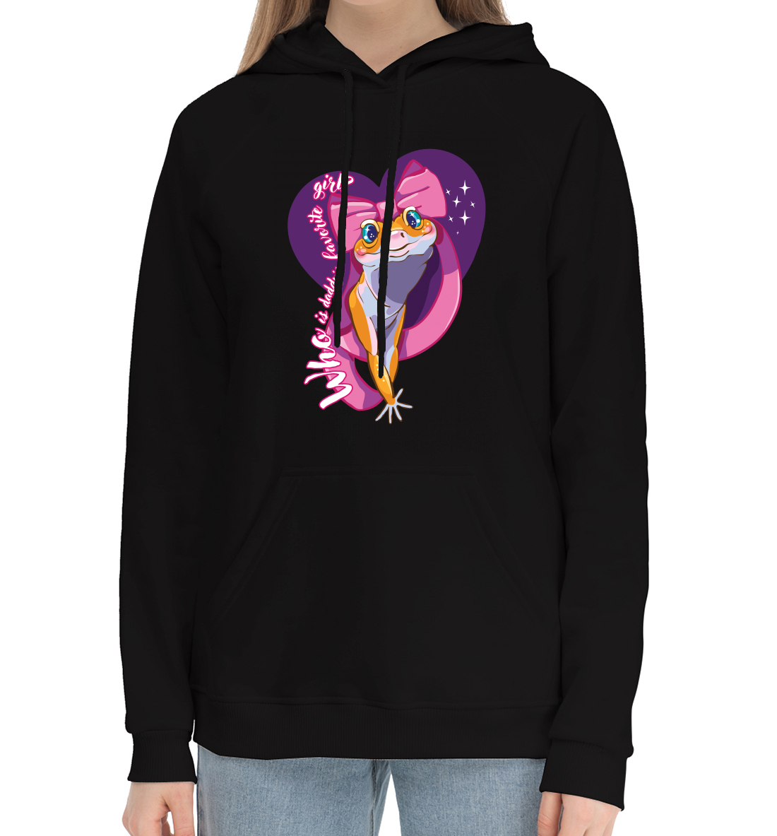 Женский хлопковый худи с принтом «Girl (black)»