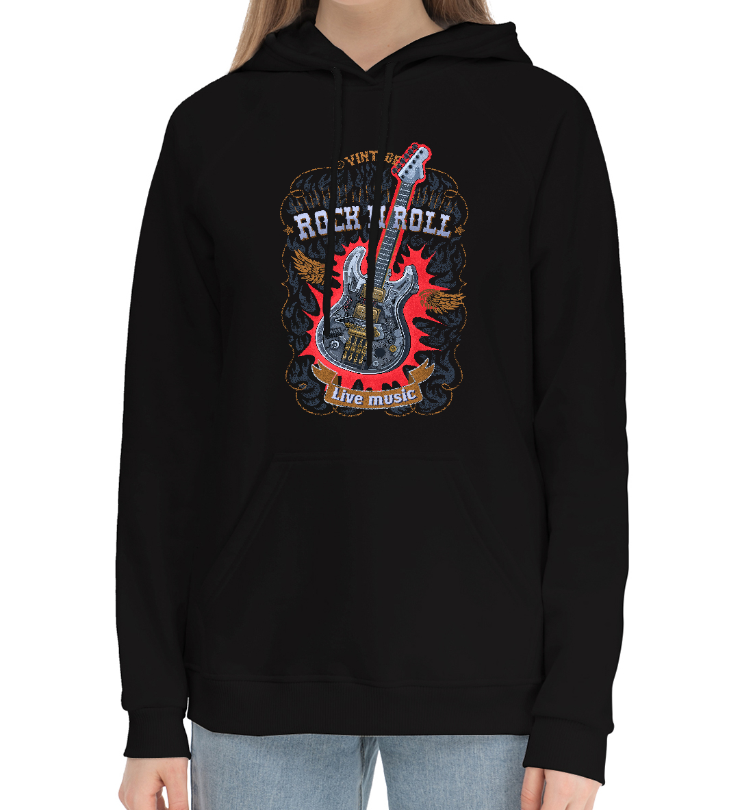 Женский хлопковый худи с принтом «Гитара стимпанк с надписью rock n roll»