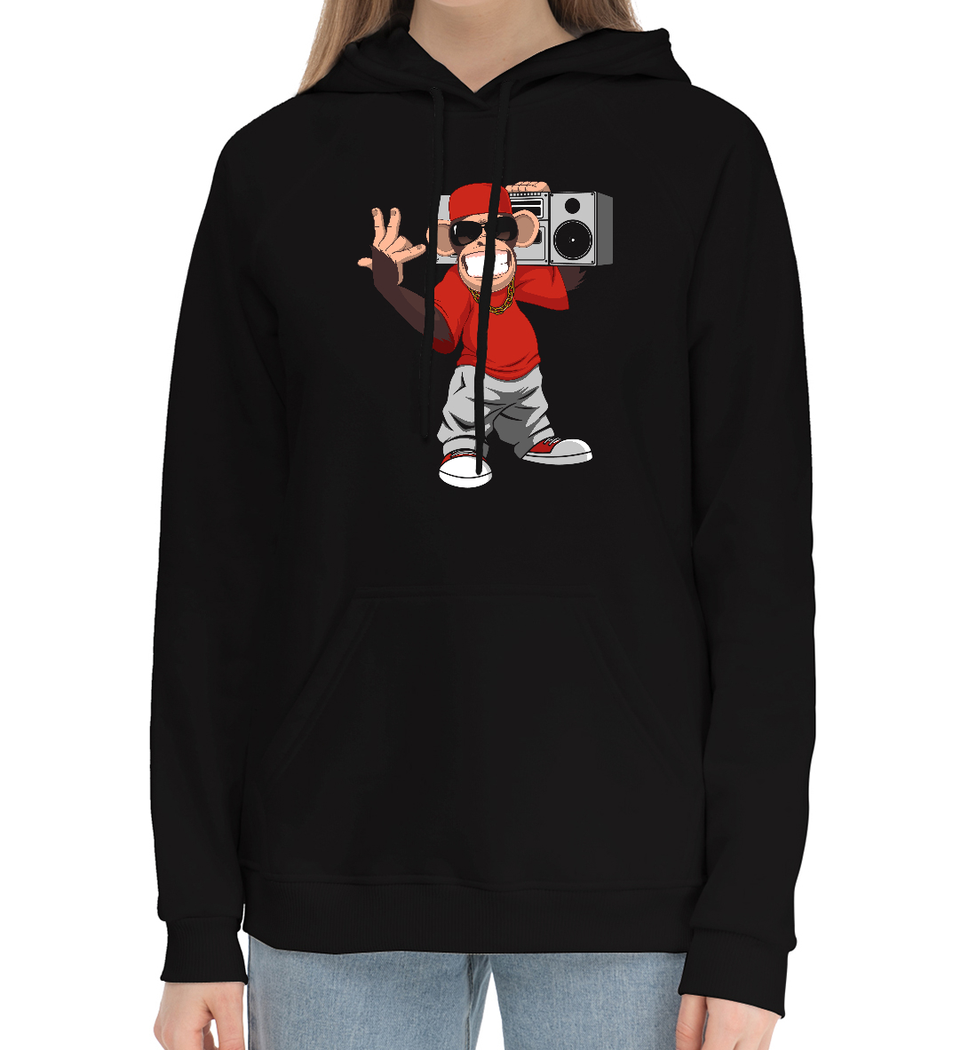 Женский хлопковый худи с принтом «Горилла с магнитофном»