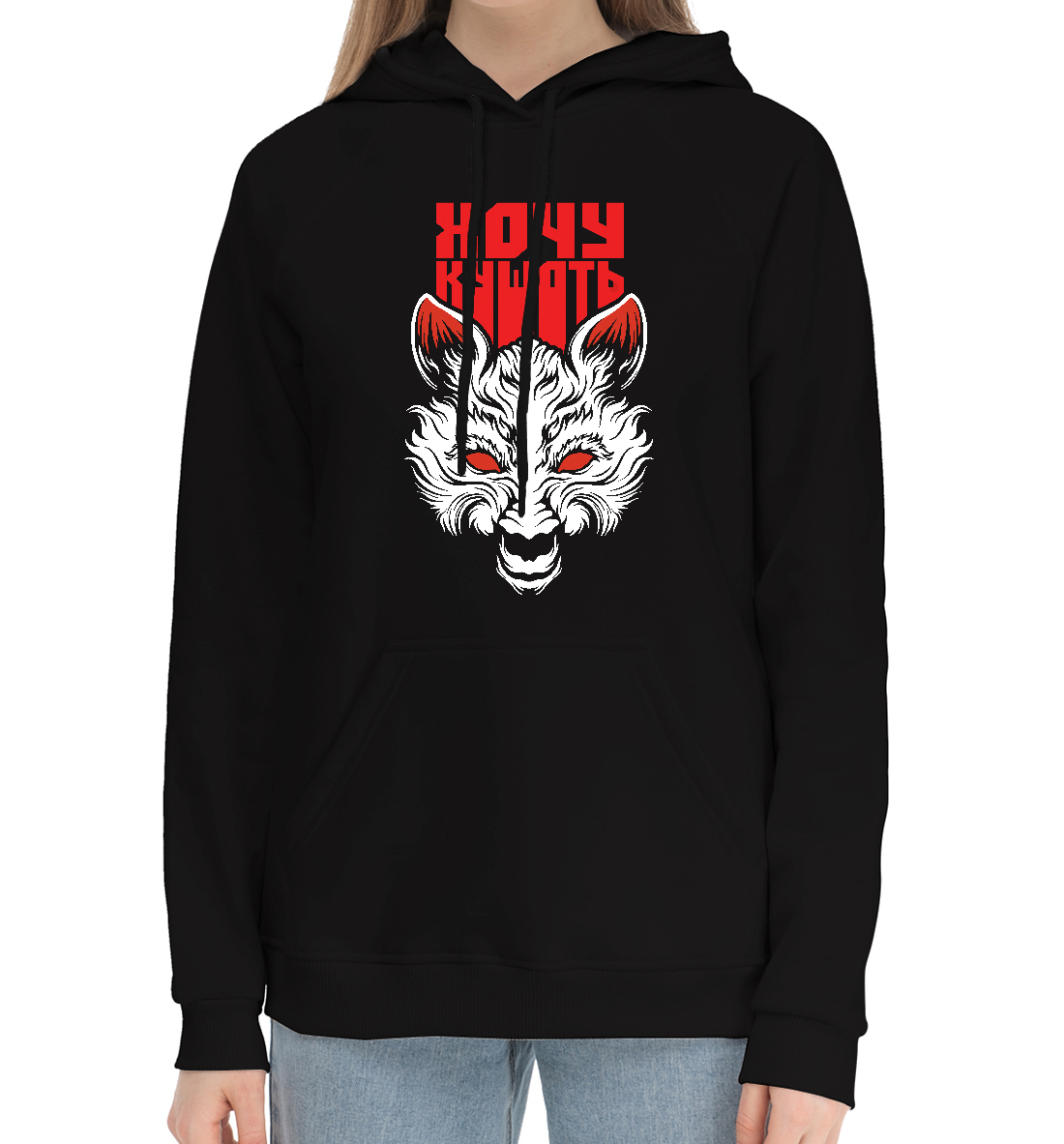 Женский хлопковый худи с принтом «Хочу Кушать»