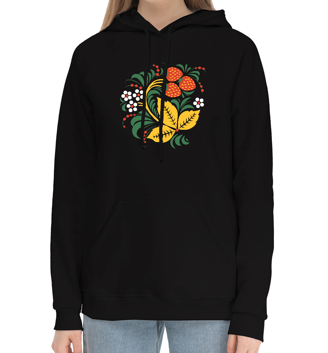 Женский хлопковый худи с принтом «Хохлома роспись Клубника»