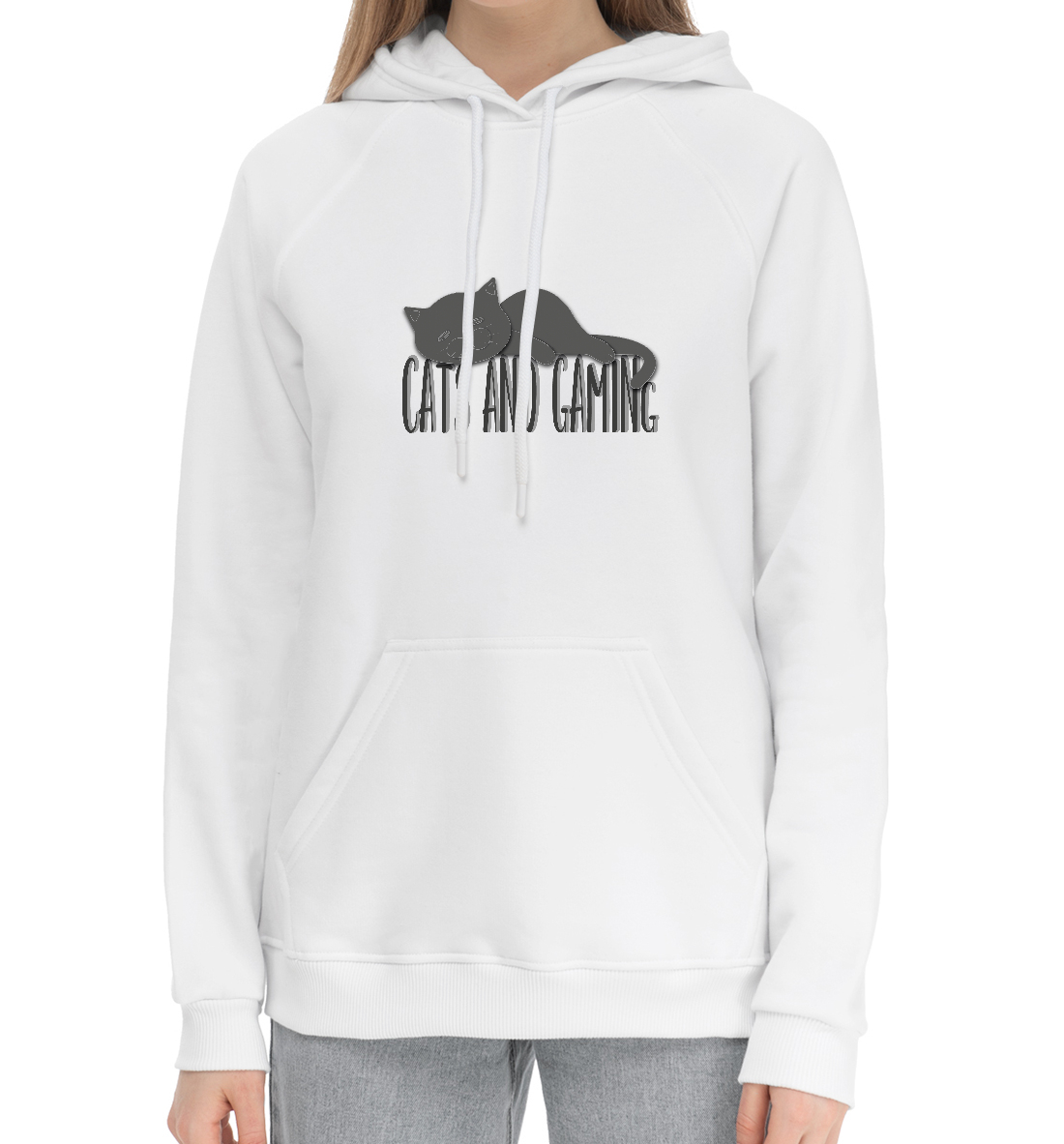 Женский хлопковый худи с принтом «Кот и игры»