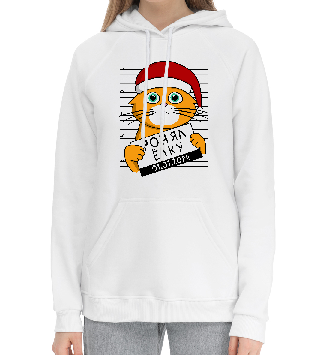 Женский хлопковый худи с принтом «Кот ронял ёлку»