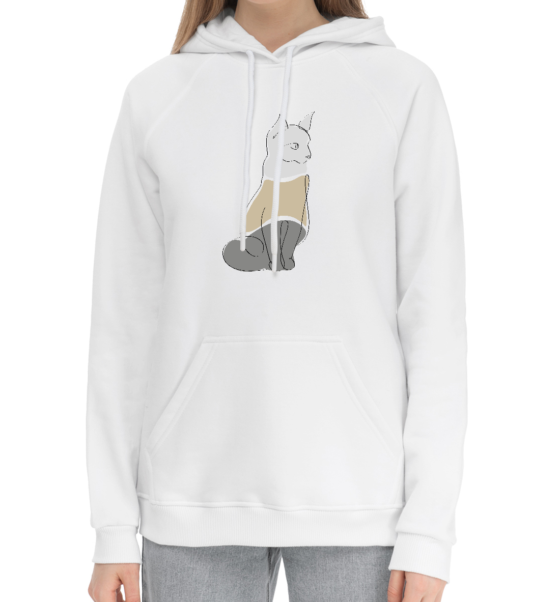 Женский хлопковый худи с принтом «Кот трехцветный»
