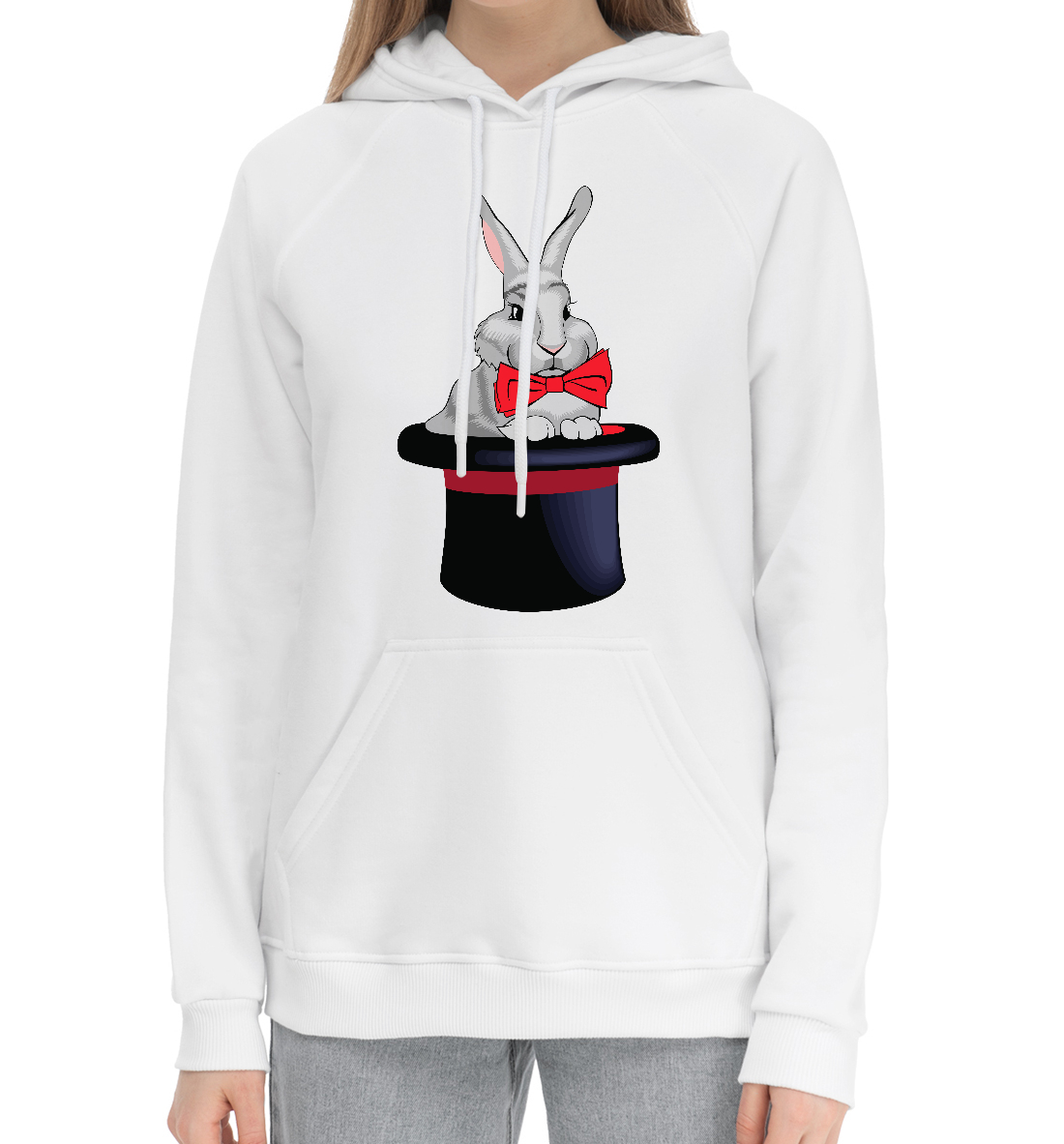 Женский хлопковый худи с принтом «Кролик в шляпе»