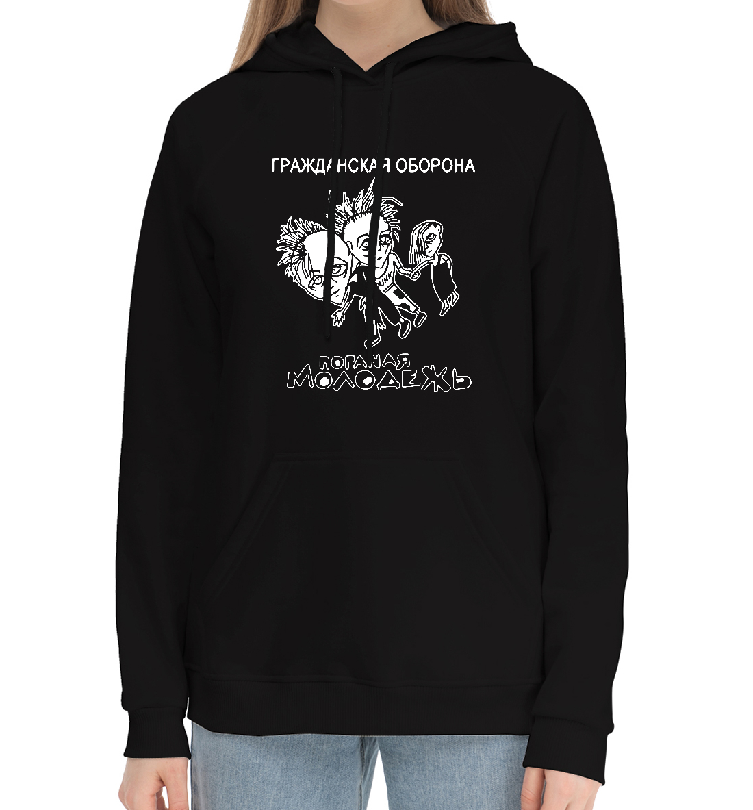 Женский хлопковый худи с принтом «Летов Поганая Молодежь»