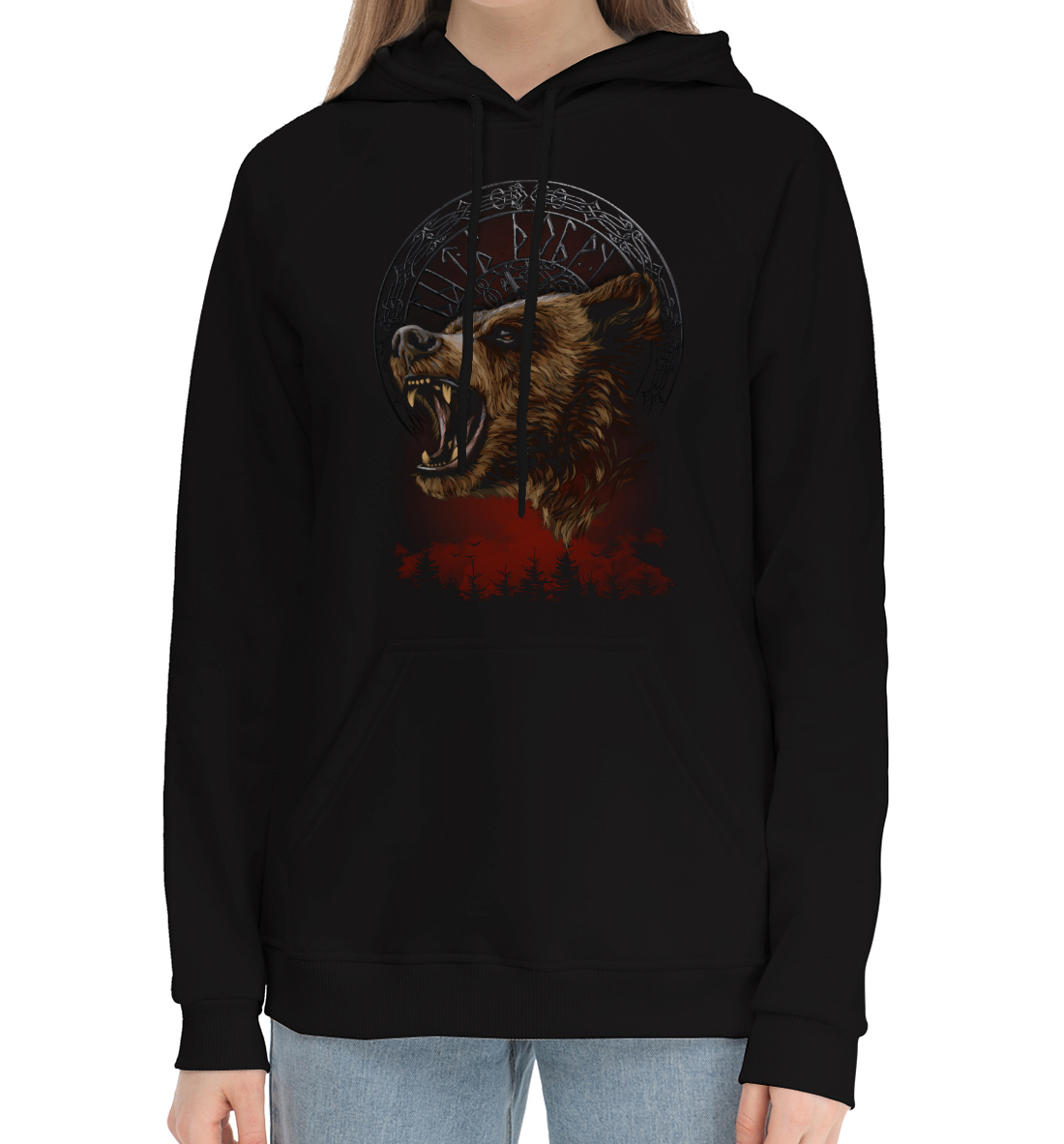 Женский хлопковый худи с принтом «Медведь - Быть Добру»