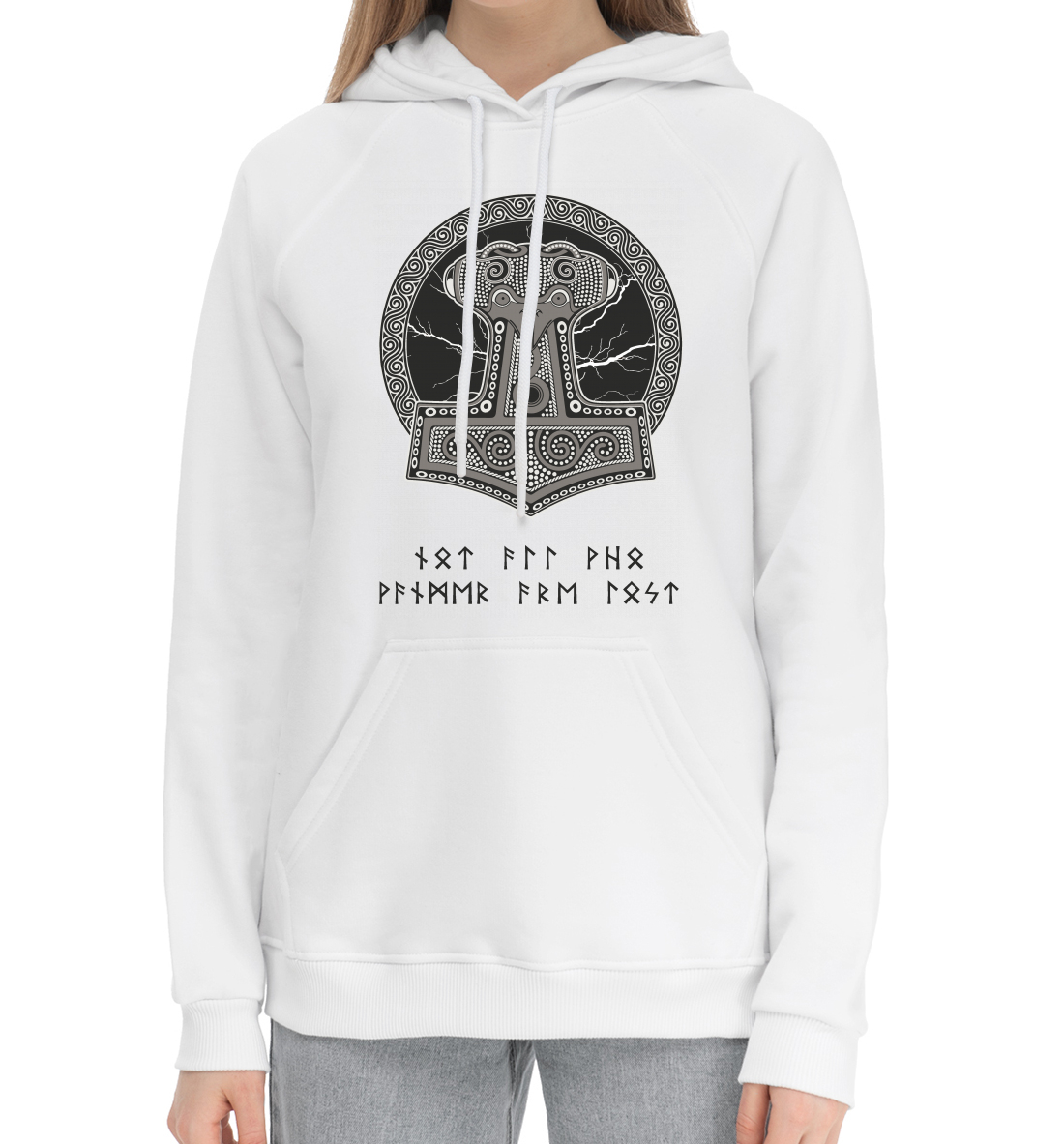 Женский хлопковый худи с принтом «Молот Тора»