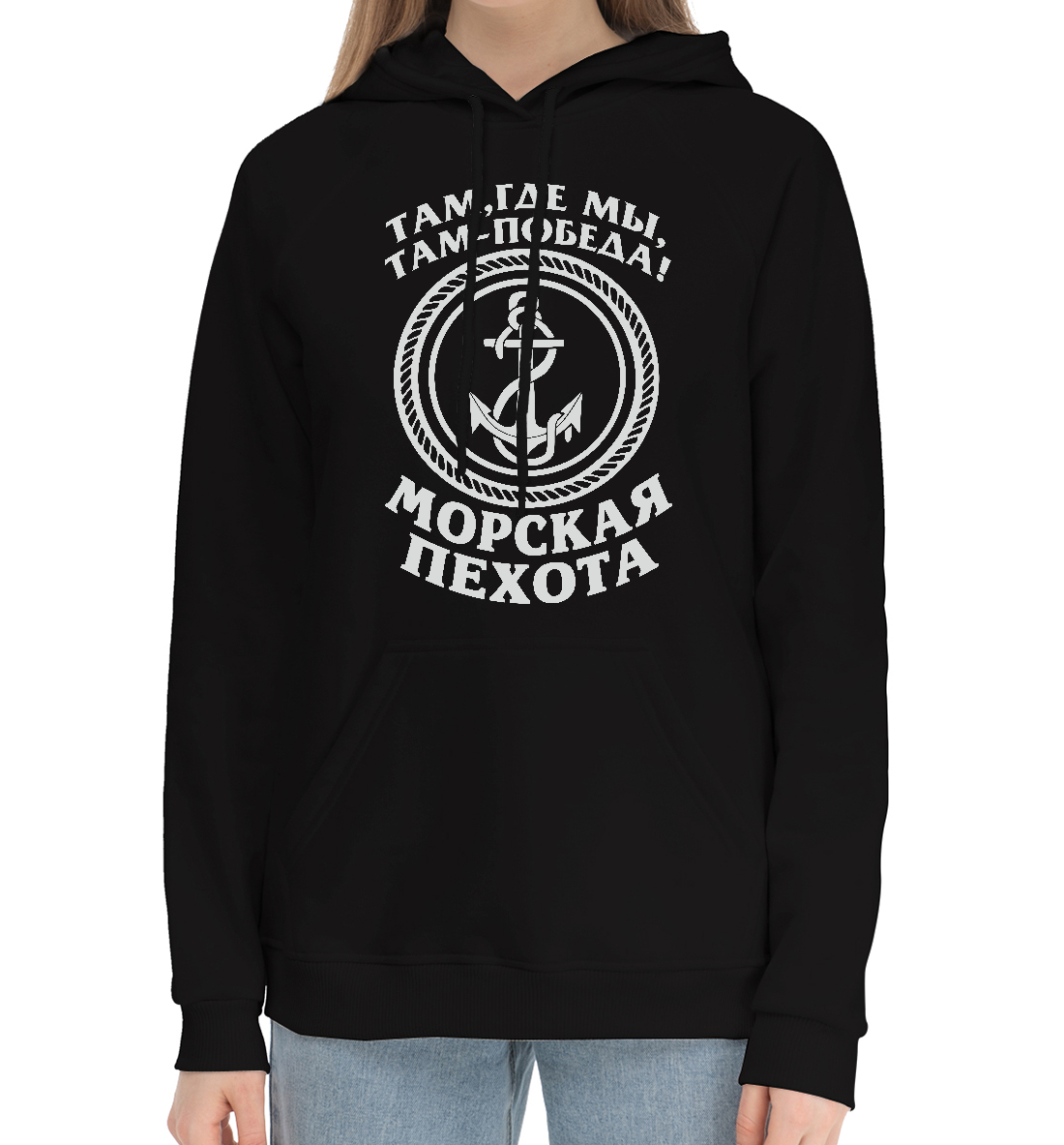 Женский хлопковый худи с принтом «Морская пехота - якорь»