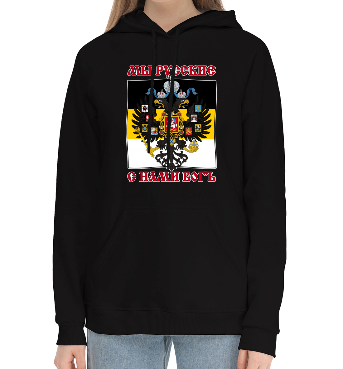 Женский хлопковый худи с принтом «Мы Русские, с нами Богъ!»