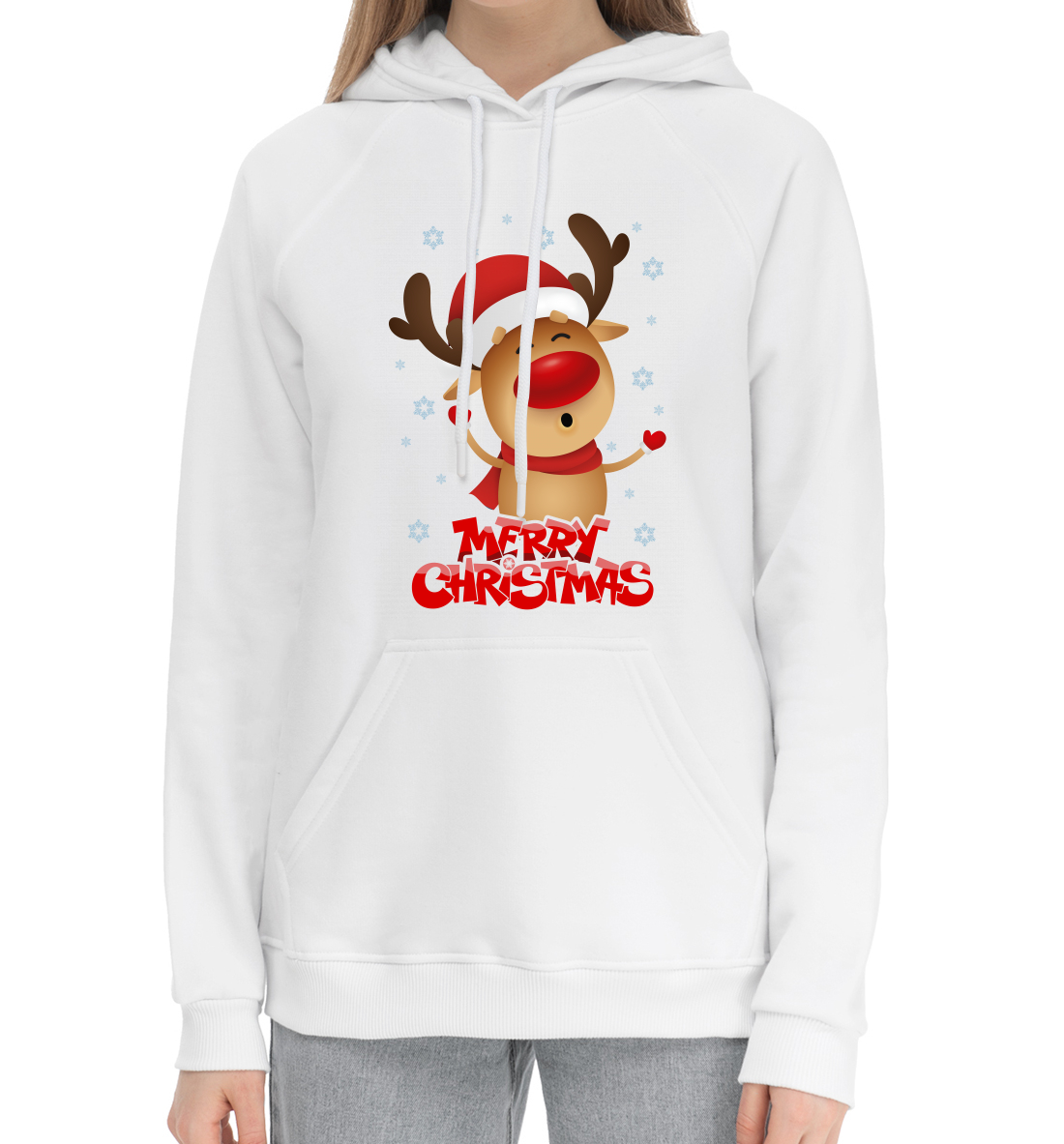 Женский хлопковый худи с принтом «Новогодний олень»