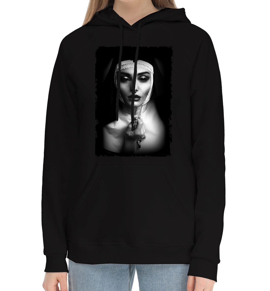 Женский хлопковый худи с принтом «NUN»