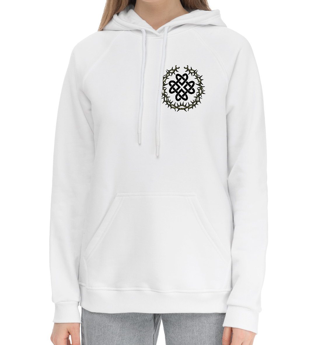 Женский хлопковый худи с принтом «Оберег любви Узел Сердце»