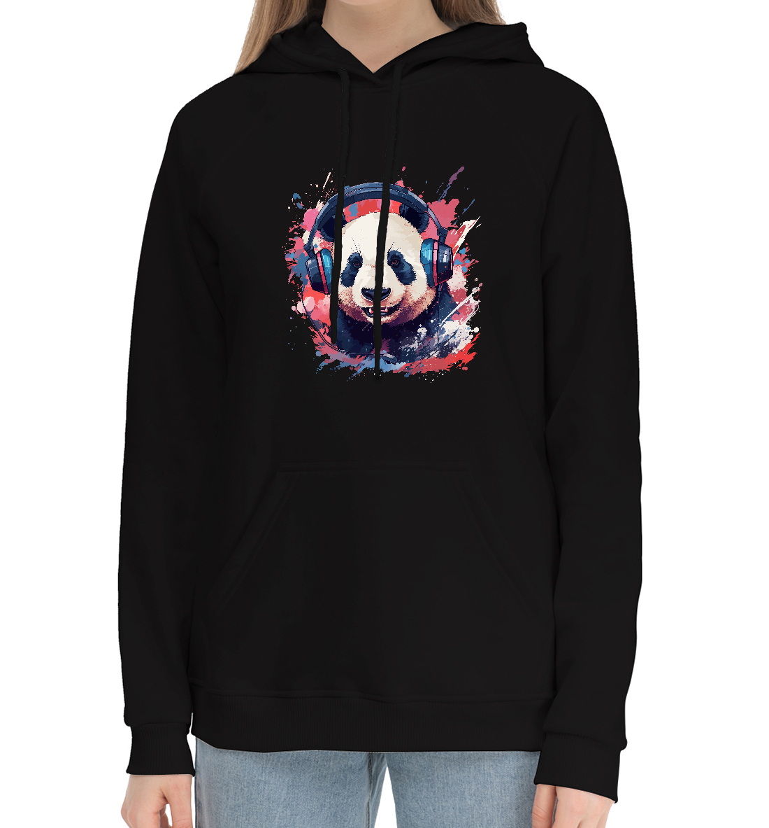 Женский хлопковый худи с принтом «Панда в наушниках»