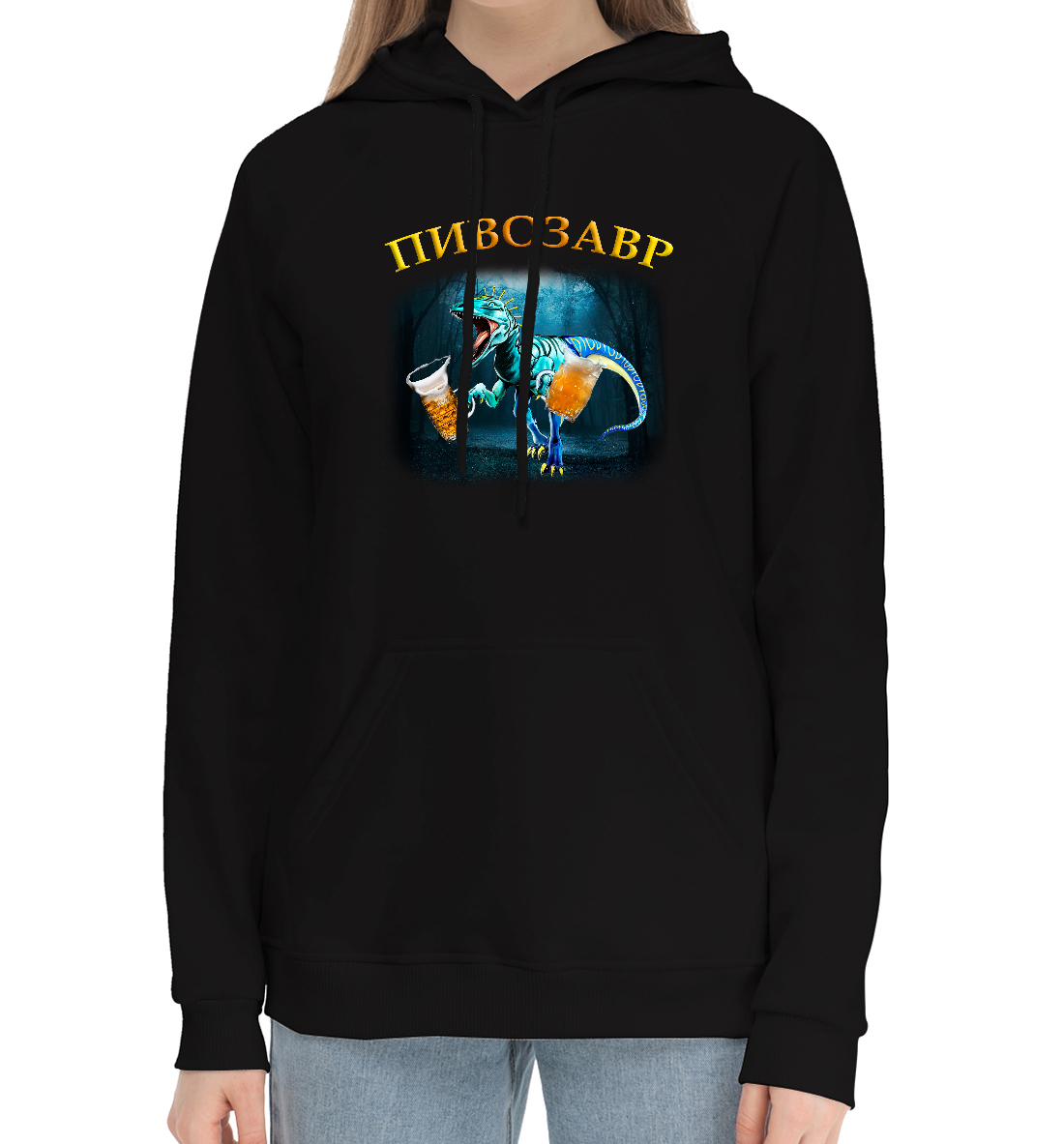 Женский хлопковый худи с принтом «Пивозавр Диего»